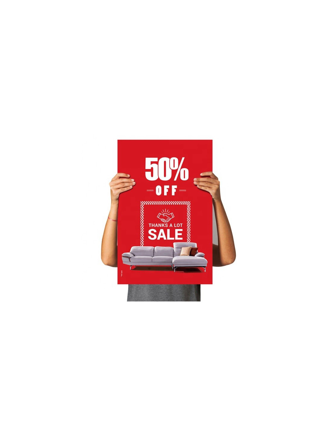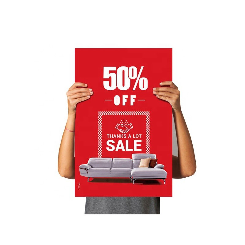Prop foam board posters on an easel to promote a new product or upcoming event. Foam board posters are printed directly onto a lightweight, rigid material.