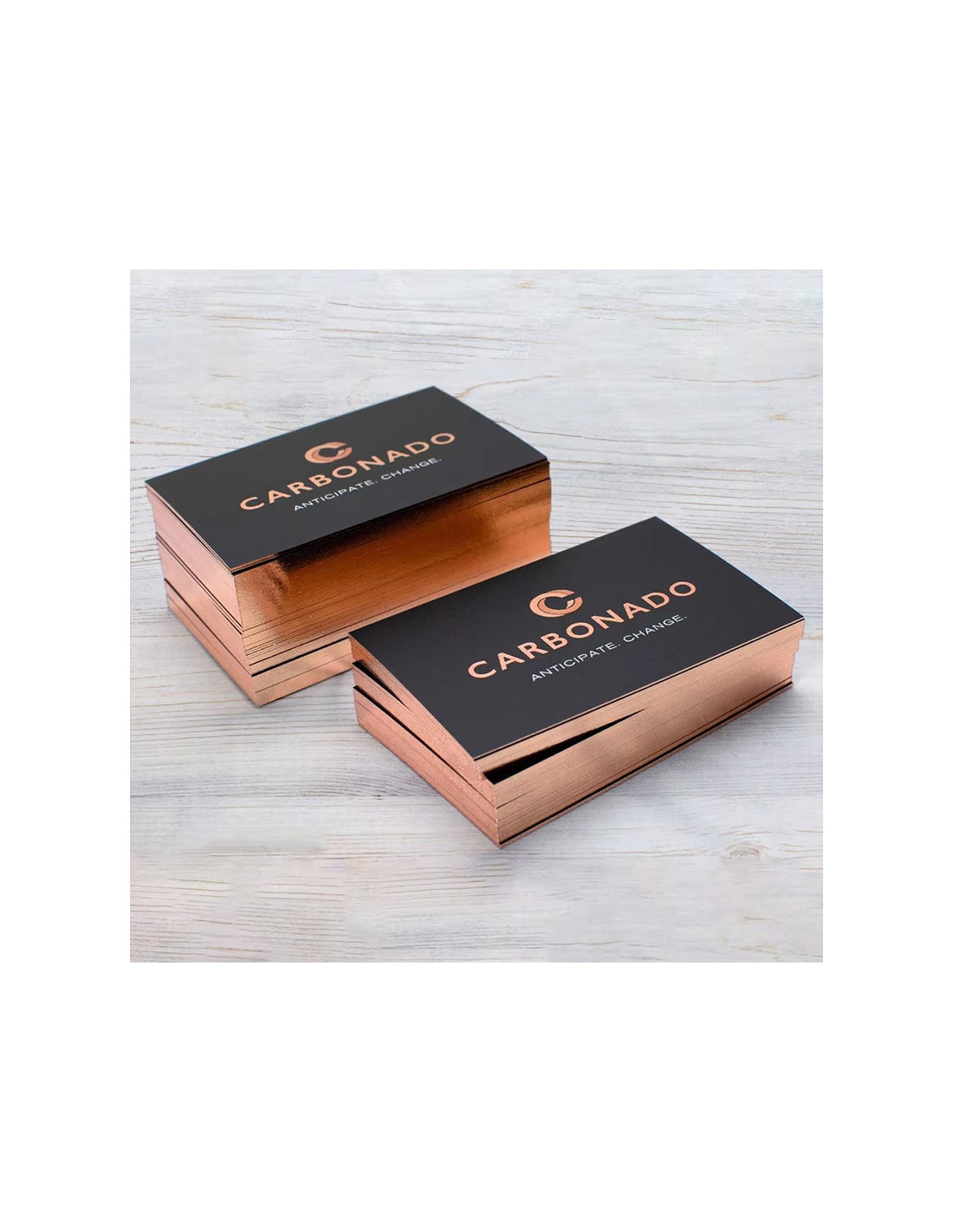 Painted edge business cards (also known as colored edge business cards) add a surprising appeal to your card. When you add one of 6 bold colors to the sides of your card, it’s easier to get noticed. And with paper that’s about twice as thick as standard cards, the flash of color sticks out even more. Painted edge business cards add dimension to your design and help you make a memorable first impression.