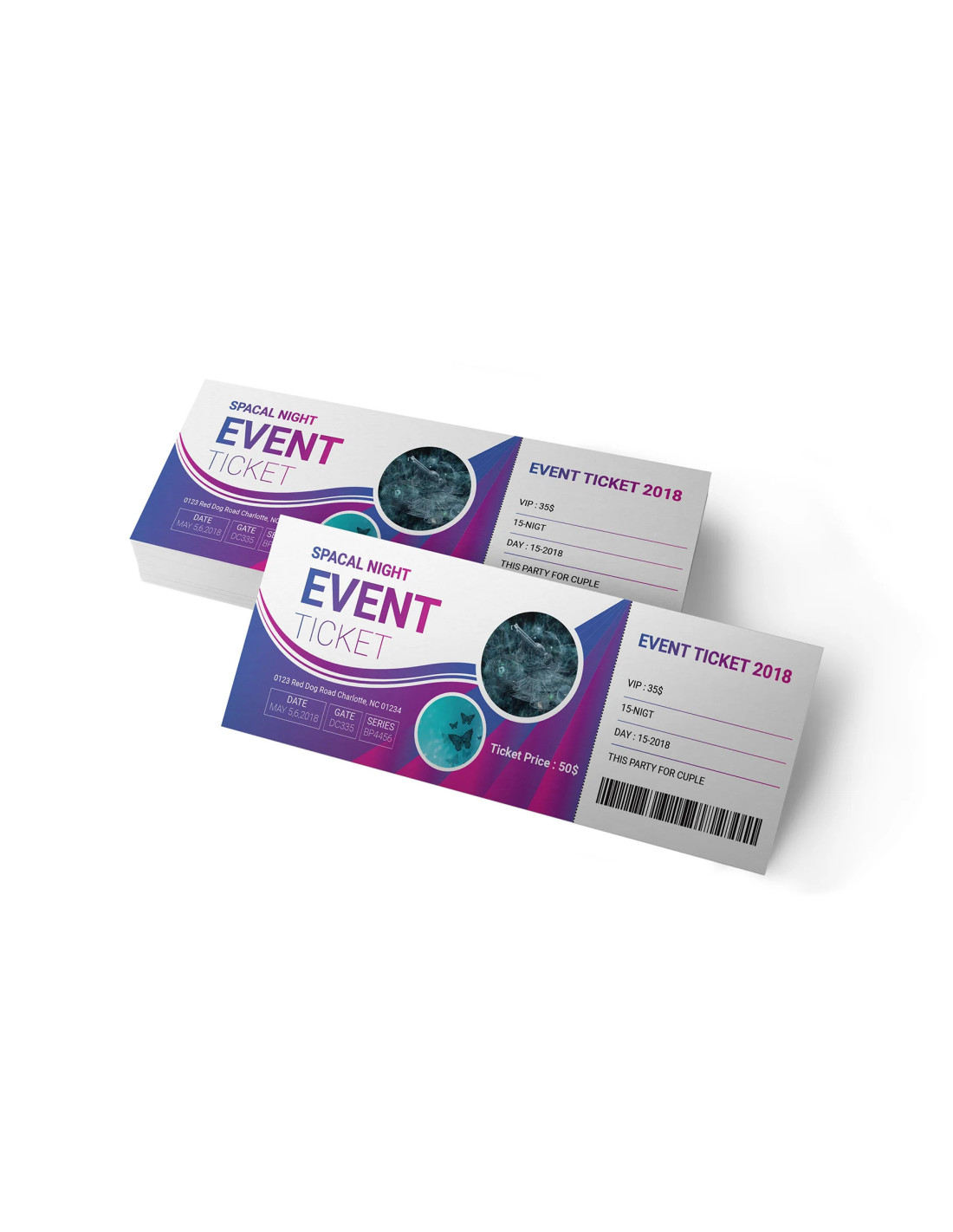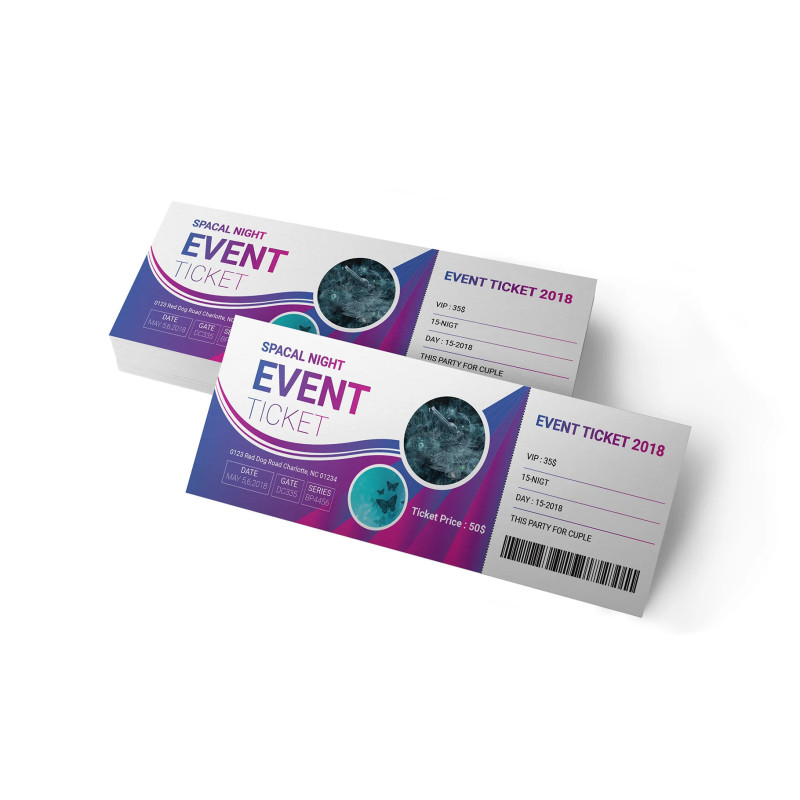 Whether you’re planning a sports event, art show or corporate experience, event ticket printing can help make your event stand out. Add colors, logos and images that match your company or event theme. You can choose to print on the front and back, or the front only,depending on how much space you need to inform – and excite – your guests.Easy to design & customize