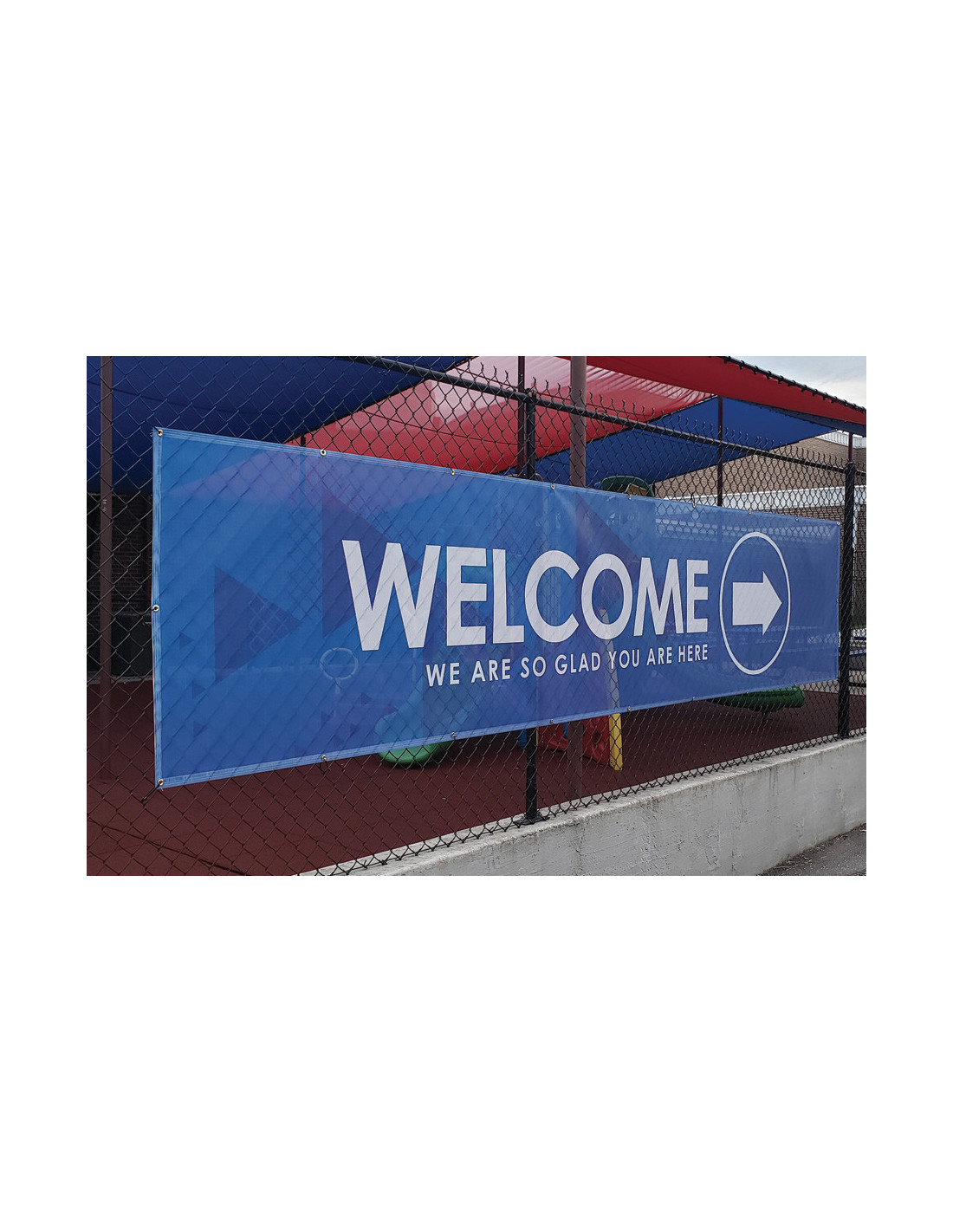 Made of UV- and water-resistant polyester, the banner’s mesh weave lets the wind pass right through. And with half-inch metal grommets and reinforced edges included, your mesh signs will look great time and time again, no matter what Mother Nature has in store.Design with confidence