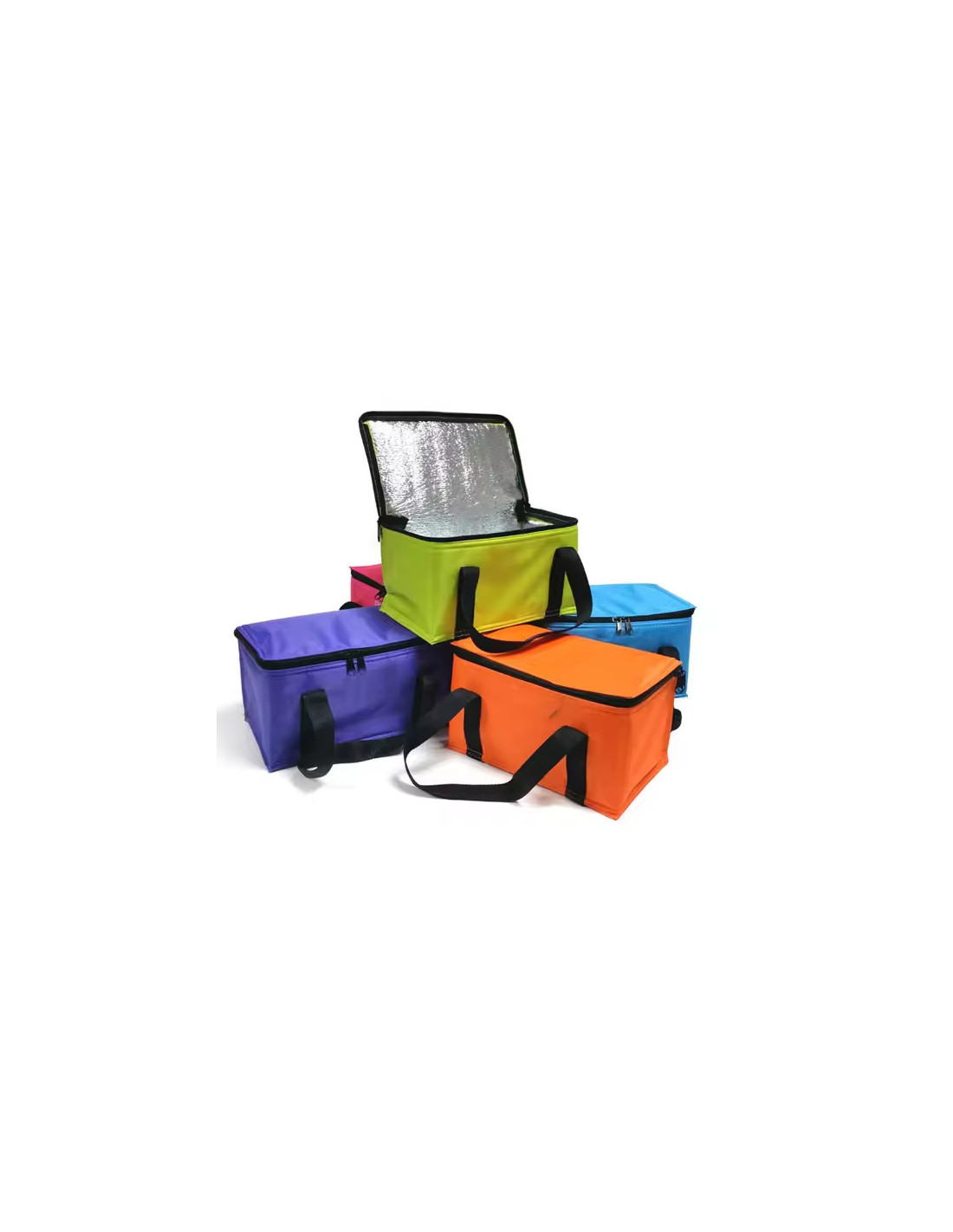 Zippered main compartment fits 6 cans or a variety of snacks.