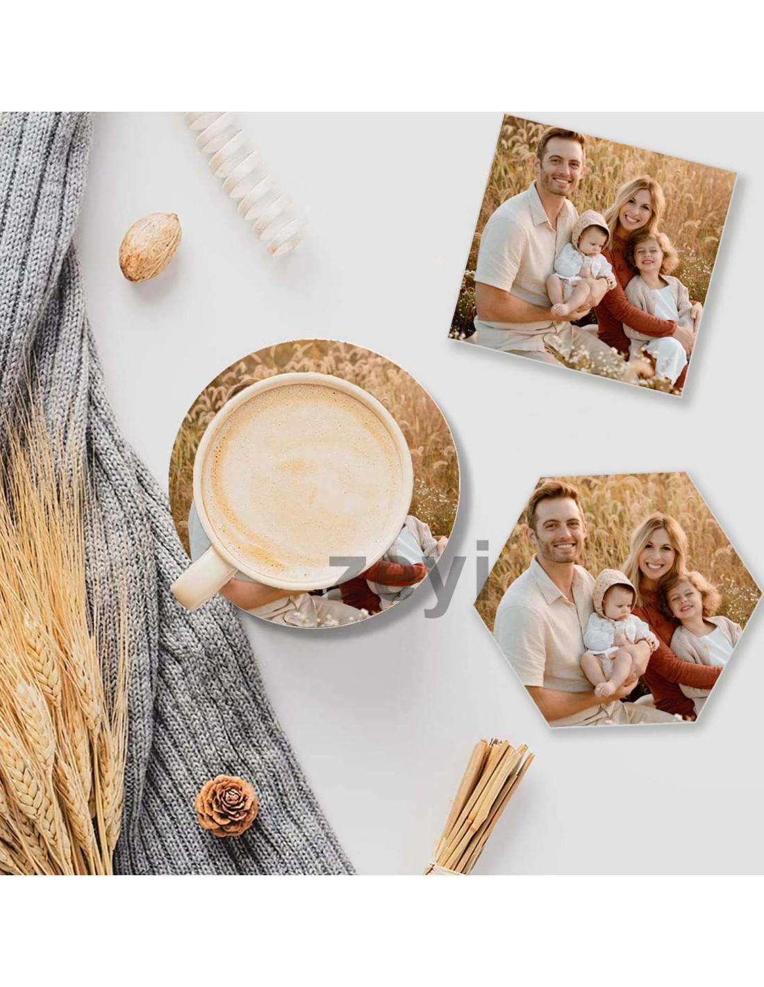 Add a special touch to tabletops and home bars with custom photo coasters.