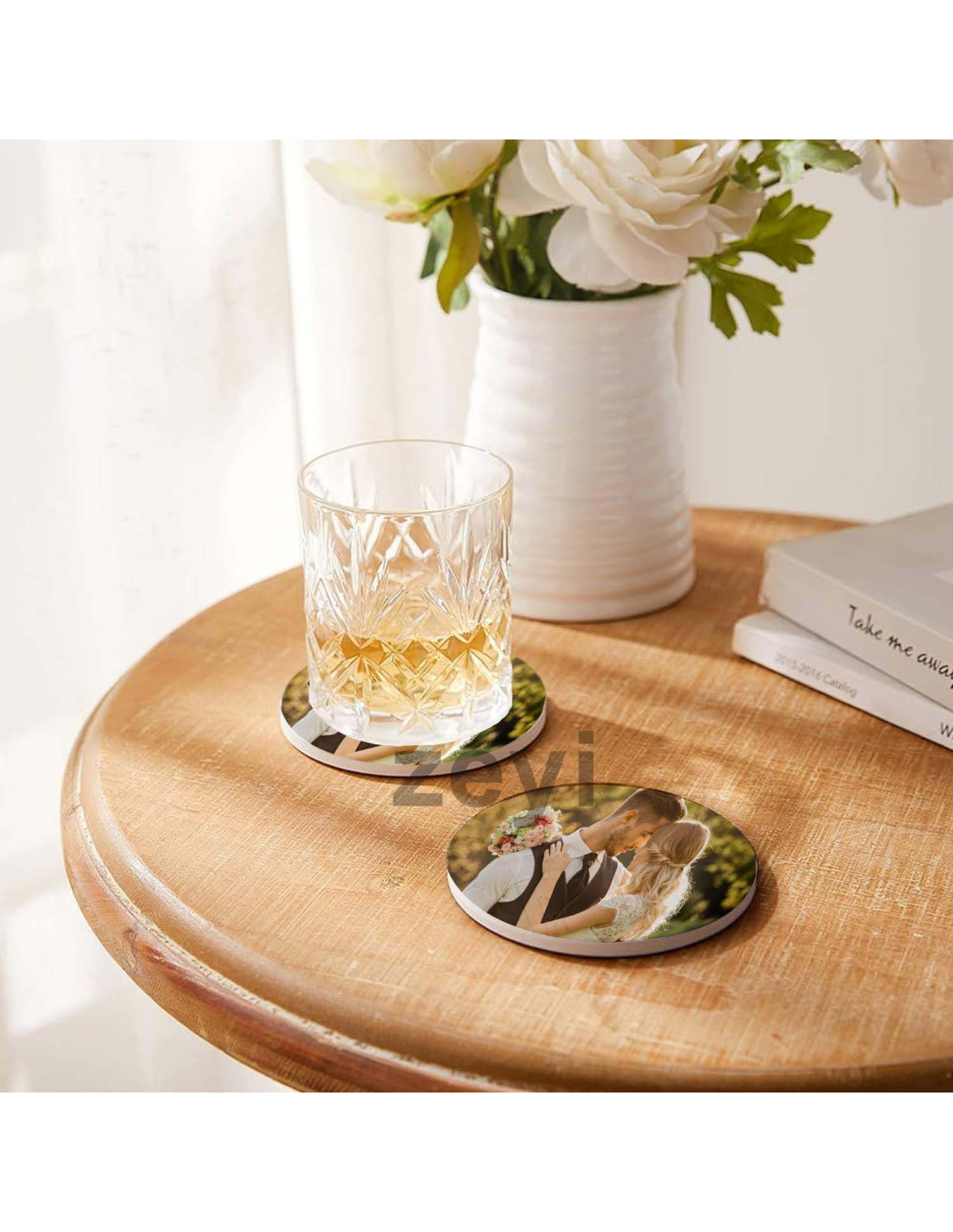 Personalized coasters are a simple way to prevent water marks while also brightening up tables and place settings. The easy-to-clean, high-gloss finish gives your photos or design staying power, and the cork backing keeps the coasters in place. Like little details that go a long way, custom coasters add that unique personal touch every time a drink is served.Made by you, in no time