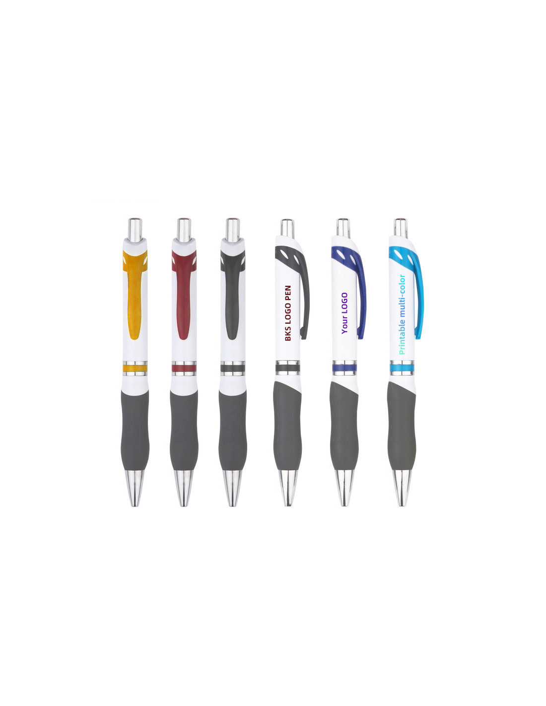 Comfortable design This custom pen features a soft rubber grip which makes every writing task a breeze. People will love how it glides across paper easily. What’s more, the silver details bring a refined touch and make this personalized pen a great mini billboard.
